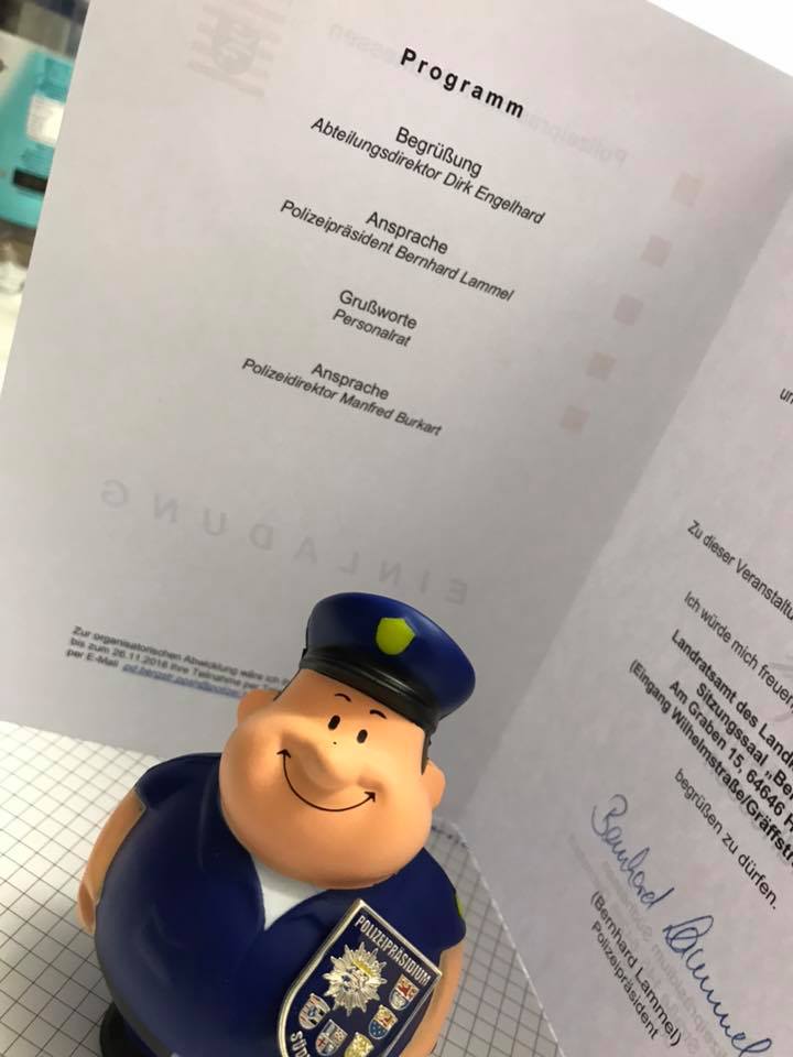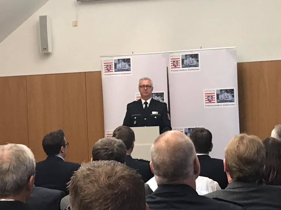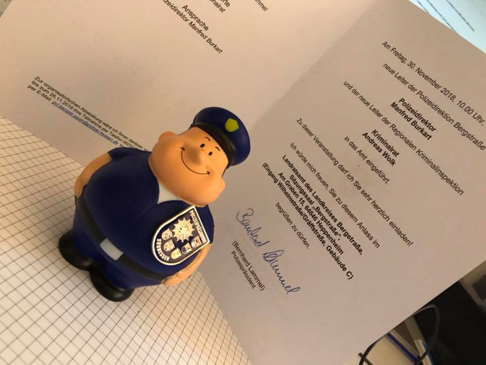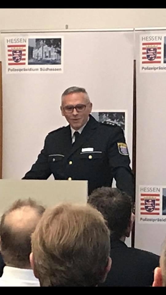 Heiner-Bert ist bei der Verabschiedung und Begrüßung der alten und neuen Leitung der Polizeidirektion Bergstrasse.